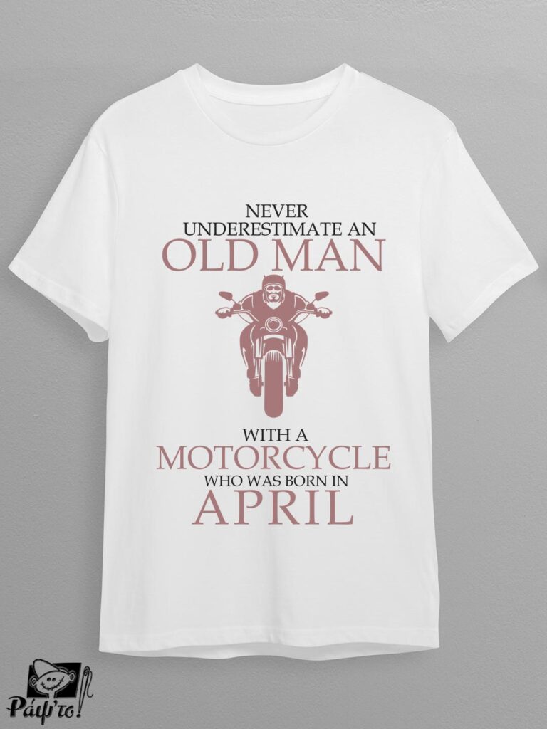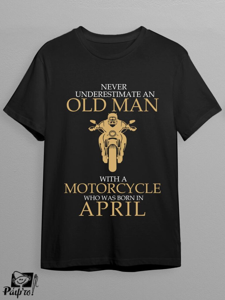 Αντρικό T-shirt – Never Underestimate an old man – with a motorcycle who was born in – (Μήνας)